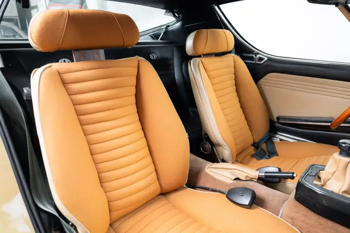 This 1974 Alfa Romeo Montreal comes in the outrageously extravagant and original color ‘Oro Metallizzato’ — the kind of gold that makes you want to wear a thick chain over an open polyester shirt. And we absolutely love it. The party continues inside with an interior just as striking: Avana Beige. It’s the color of a vintage tuxedo — luxurious and suave — and it feels like it’s about to offer you a bottle of Chivas Regal and a lighter. This is the car for the person who doesn’t ask for attention — they simply command it.