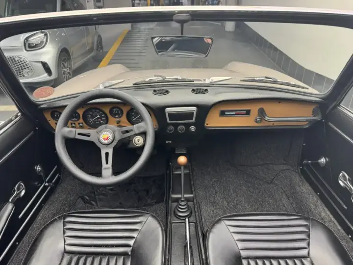Cette Fiat 850 Spider est un superbe exemplaire bénéficiant d’une restauration complète réalisée dans nos ateliers. L’ensemble des organes essentiels a été minutieusement remis à neuf : freins, trains roulants, moteur, carrosserie, ainsi qu’une partie de l’intérieur, offrant aujourd’hui une voiture à la fois saine, fiable et extrêmement plaisante à conduire.