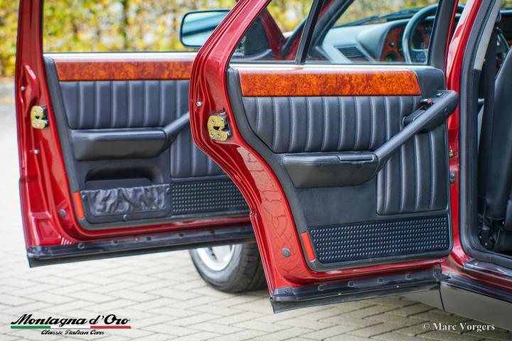 De Lancia Thema is een prachtige vierdeurs sportsedan, uitgerust met een 215 pk sterke 3-liter V8-motor met 32 kleppen (8.32) en een luxe volledig lederen interieur van Poltrona Frau. Van 1986 tot 1992 werden er slechts 3.971 exemplaren gebouwd, waardoor de Lancia Thema 8.32 een zeldzame verzamelauto is.