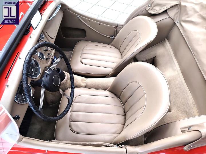 The red exterior combined with the beige interior enhances the classic lines of this British roadster, highlighting its elegant yet sporty character.