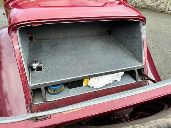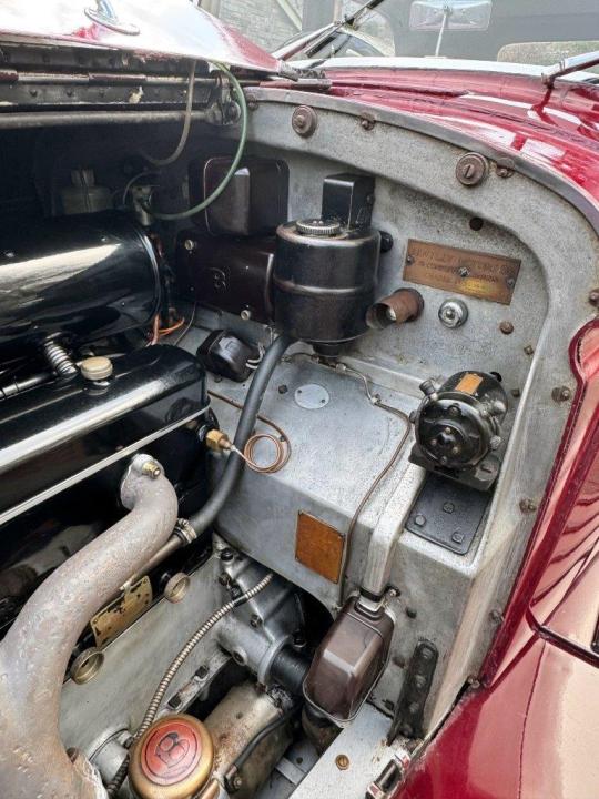 A good, sound car, perhaps needing some cosmetic improvement, but in sound, correct condition, and has been used & enjoyed recently by the last owner. The deep red paintwork is suffering from age, but the structure of the coachwork is fine, the doors closing nicely & fitting well. The interior is grey leather with fresh grey carpets and the headlining is in good order. Overall, the car is very useable & looks impressive with its array of lamps and horns, and is fitted with a ‘backward leaning’ flying B mascot. The history file includes various correspondence, old MoT certificates, a green 1960s logbook, an original handbook as well as a modern reproduction. Mechanically good following a great deal that has been spent on the car over the last fifty years, totalling £135,000, all fully documented with invoices. This includes major works, such as engine, rear axle & radiator overhauls, & much more besides, details of which are available. In addition to this, the car is fitted with a high ratio back axle, which very much helps with cruising on long-distance touring. All of this puts the car puts the car in good stead for the future!