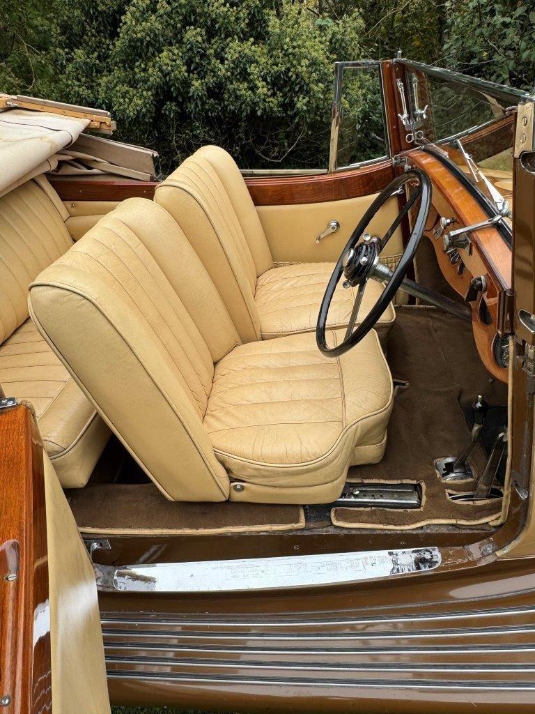 A very striking Derby Bentley which incorporates various unusual and very appealing design features. Sporty in appearance, sharp and lovely in condition and running very well. One of the very first Derby Bentleys built, originally bodied by Park Ward, the current Barker body was built for a slightly later 3½ Litre in 1935, but transferred to this car in the 1950s. The car features very sleek wing design, shallow windscreen, some very attractive body mouldings and swage lines to the scuttle and bonnet (which are also louvred), the rear quarters and the doors, too have sweeping, curved lines, enhanced by colour division. Early photos of the body when mounted on B178DG, although black & white, suggest a very similar colour scheme to that still on the car. These photos, together with shots of various documentation, an old logbook, etc, can be seen on the 'More Photos' page. The paintwork, chrome plating, upholstery, woodwork and cosmetics generally are all excellent, and the fitment of a full set of 'Ace' wheel discs and a 'clam shell' spare wheel cover, correct P100 headlights,the facility for mounting luggage on the lid of the already quite spacious boot, all add to the car's practicality. Excellent, probably unique and a very rare opportunity to acquire such a special specimen. The car has a recent aluminium cylinder head and we have just fitted five new tyres and heavy duty tubes. Serviced, prepared and offered newly MoT tested.