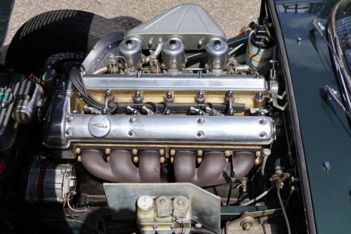 What makes this E-Type especially desirable is its original colour combination: Opalescent Dark Green with beige leather interior, elegantly finished with green piping. A rare and highly attractive specification, just as it left the factory in 1966. The paintwork still presents with a deep shine, and the interior exudes unmistakable British class.