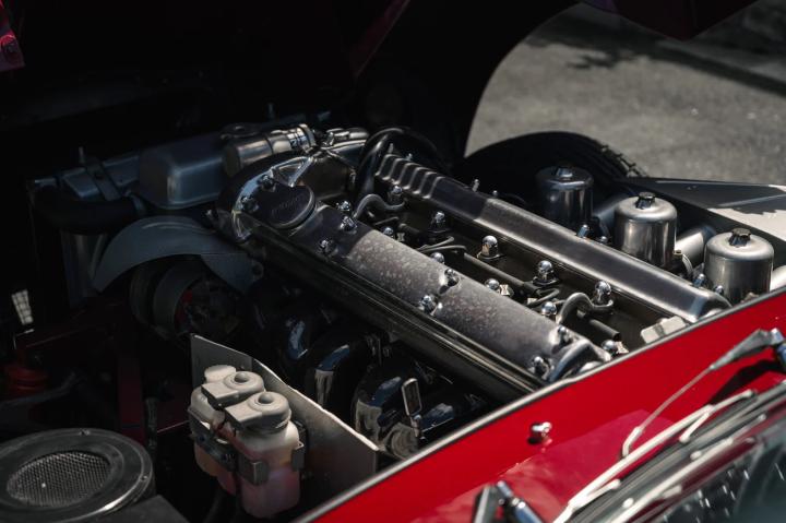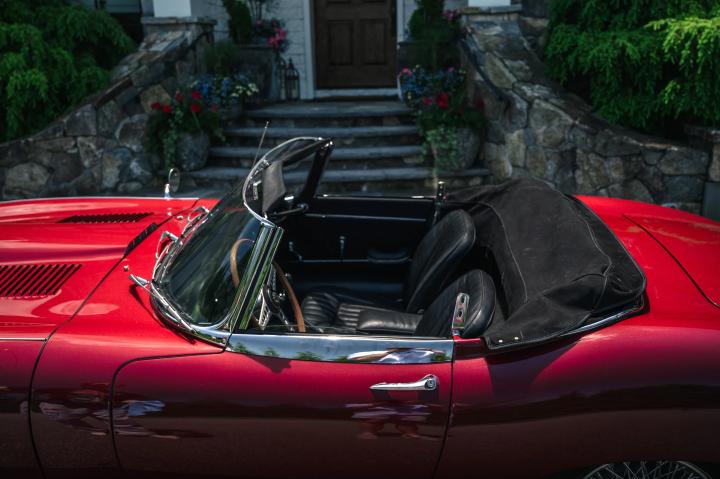 A standout example of the Series 1 E-Type is this 1967 Jaguar XKE Roadster presented in its original Opalescent Bordeaux Claret paint, complemented by a black leather interior and matching convertible top. Despite being built in 1966, it wasn't registered until November 1966, thereby designated as a 1967 model. Originally commissioned by Hoffman's Jaguar Cars in New York, this E-Type was first enjoyed by its first owner for nearly a year before it passed to a second owner, in October 1968.