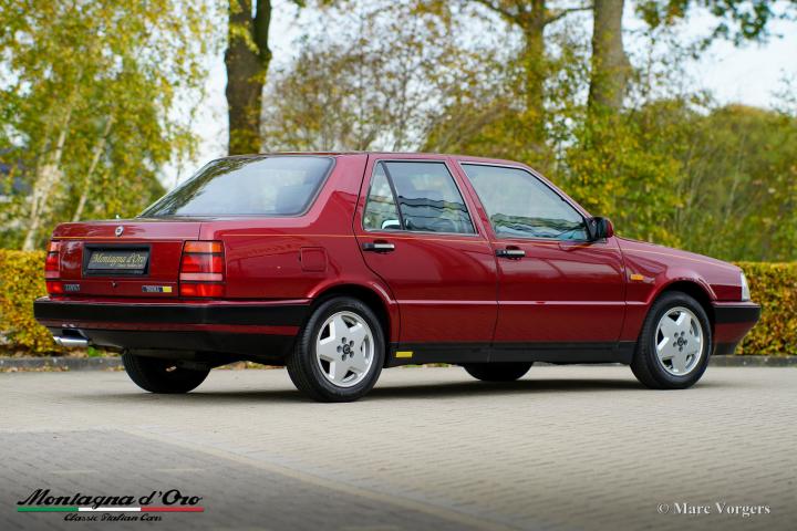 De Lancia Thema is een prachtige vierdeurs sportsedan, uitgerust met een 215 pk sterke 3-liter V8-motor met 32 kleppen (8.32) en een luxe volledig lederen interieur van Poltrona Frau. Van 1986 tot 1992 werden er slechts 3.971 exemplaren gebouwd, waardoor de Lancia Thema 8.32 een zeldzame verzamelauto is.