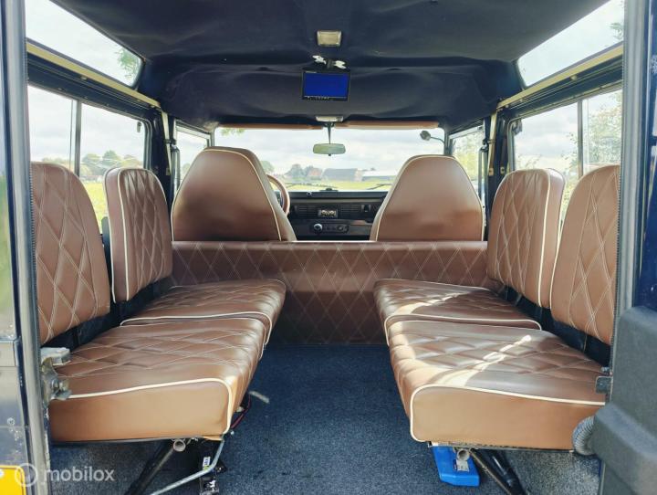 Ja, een unieke Defender, zijn ze dat niet allemaal? Nou als je bij de meeste gaat kijken dan zijn het echte landarbeiders. En deze die we hier hebben is meer een modepopje. Wel een hele stoere, maar als je het interieur ziet dan voel je je in fashionland Italië. En laat deze ex politie Landrover daar nu ook net vandaan komen met unieke eigenschappen. Daarover later meer. Met z'n cognac bruine leren interieur met ruitmotief is het genieten in het interieur. Dit vanwege het luxe karakter van de laatste eigenaar in Italië, een voorname yachtclub die met deze auto hun gasten vervoerde over de haven. De eerste eigenaar was de politie van Italië. Zij verzochten speciaal bij Landrover een snellere versie van de Defender. En dat kwam er met de benzine versie met 136 pk. Deze kon lekker toeren draaien en daarmee konden ze de boeven beter bijhouden. Nu is het vooral genieten van de stilte die de benzinemotor met zich meebrengt en het voordelige rijden op lpg. Vanaf minder dan 10.000 km per jaar al voordeliger. En rijdt u minder dan halen we de installatie met alle liefde vanonder de auto.