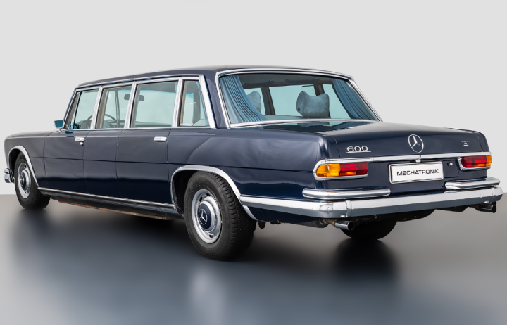 Der Mercedes-Benz 600 Pullman, war eine außergewöhnlich geräumige und luxuriöse Limousine, die auf dem Chassis des W100-Modells basierte. Sie wurde in der Regel von Staatsmännern, hochrangigen Persönlichkeiten und anderen einflussreichen Individuen bevorzugt, die höchsten Komfort und Stil suchten. Der bemerkenswerte Unterschied zur Standardversion bestand in einem verlängerten Radstand, der eine großzügige Erweiterung des hinteren Innenraums ermöglichte. In der Regel verfügte der Mercedes 600 Pullman über zwei Reihen von Sitzen, wobei die Passagiere in der zweiten Reihe in Fahrtrichtung saßen. Dieses Sitzarrangement schuf einen äußerst komfortablen und privaten Raum im Fond des Fahrzeugs, ideal für diskrete Gespräche oder konzentriertes Arbeiten während der Fahrt. Das hydraulische Fahrwerk, das bereits in der Standardversion des Mercedes 600 zu finden war, wurde auch in der Pullman-Version beibehalten. Dieses System sorgte stets für eine bemerkenswert ruhige und komfortable Fahrt, da es Unebenheiten in der Straße effektiv ausglich. Die Innenausstattung des Mercedes 600 Pullman war von höchster Qualität und umfasste feinstes Leder, edle Holzverkleidungen und Teppiche. Kunden hatten die Möglichkeit, die Ausstattung nach ihren individuellen Vorlieben und Bedürfnissen anzupassen. Dies trug zur Einzigartigkeit eines jeden Fahrzeugs bei und unterstrich den Anspruch des Mercedes-Benz 600 Pullman als Inbegriff von Luxus und Exklusivität. Die Pullman-Limousine wurde nicht nur wegen ihres Luxus, sondern auch aufgrund ihrer Exklusivität geschätzt. Sie wurde von zahlreichen einflussreichen Persönlichkeiten und Regierungsvertretern weltweit genutzt. Bis heute wird der Mercedes-Benz Pullman als ein herausragendes Beispiel für Luxus und Komfort in der Automobilbranche angesehen. Die Produktion dieser Pullman-Version des Mercedes-Benz 600 erstreckte sich von 1963 bis 1981 und trug maßgeblich zur Legende des W100 bei.