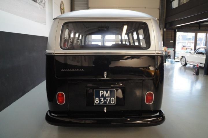 The striking black and silver two-tone paint perfectly suits the elegant lines of the T1 and gives the bus a refined and timeless appearance. The high-end paintwork was executed using period-correct Porsche colors, a subtle detail that adds an extra level of sophistication to the overall build.