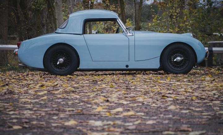 This stunning MKI sprite has a build date of 17th October 1958, this is an early ‘2 stud’ Frogeye Sprite so would have included all the initial updates that were introduced. Complete with its Heritage Certificate, this car is an original UK car, first supplied by P. Pike Ltd, Exeter. The first owner being a hotelier in Lyme Regis. The car was restored over a 10 year period using an all new steel Stage 3 Wheeler & Davies bodyshell, supplied by The Frogeye Spares Company. Prior to paint, the shell was fully seam welded and the panel gaps perfectly aligned by Malkin Motorsports. Finished in its original colour of Speedwell Blue.