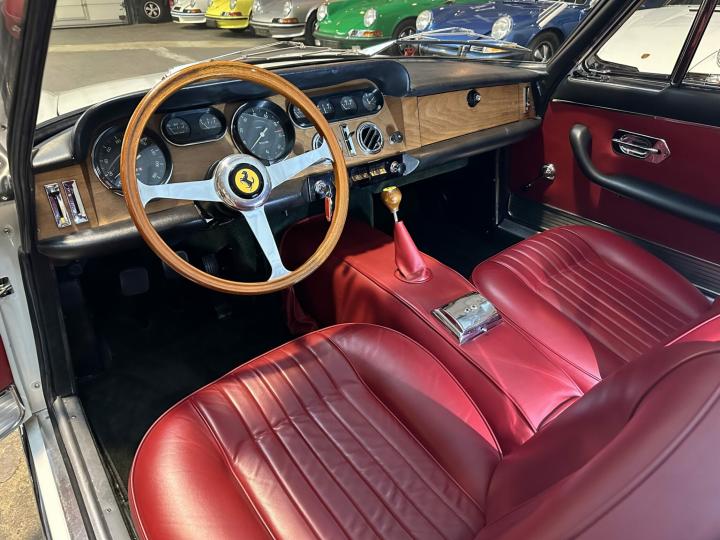 Elle est restaurée en 2013, époque à laquelle elle retrouve sa configuration d’origine Bianco 18934 Italver avec un intérieur pelle rossa comme le stipule le certificat d’authenticité Ferrari.