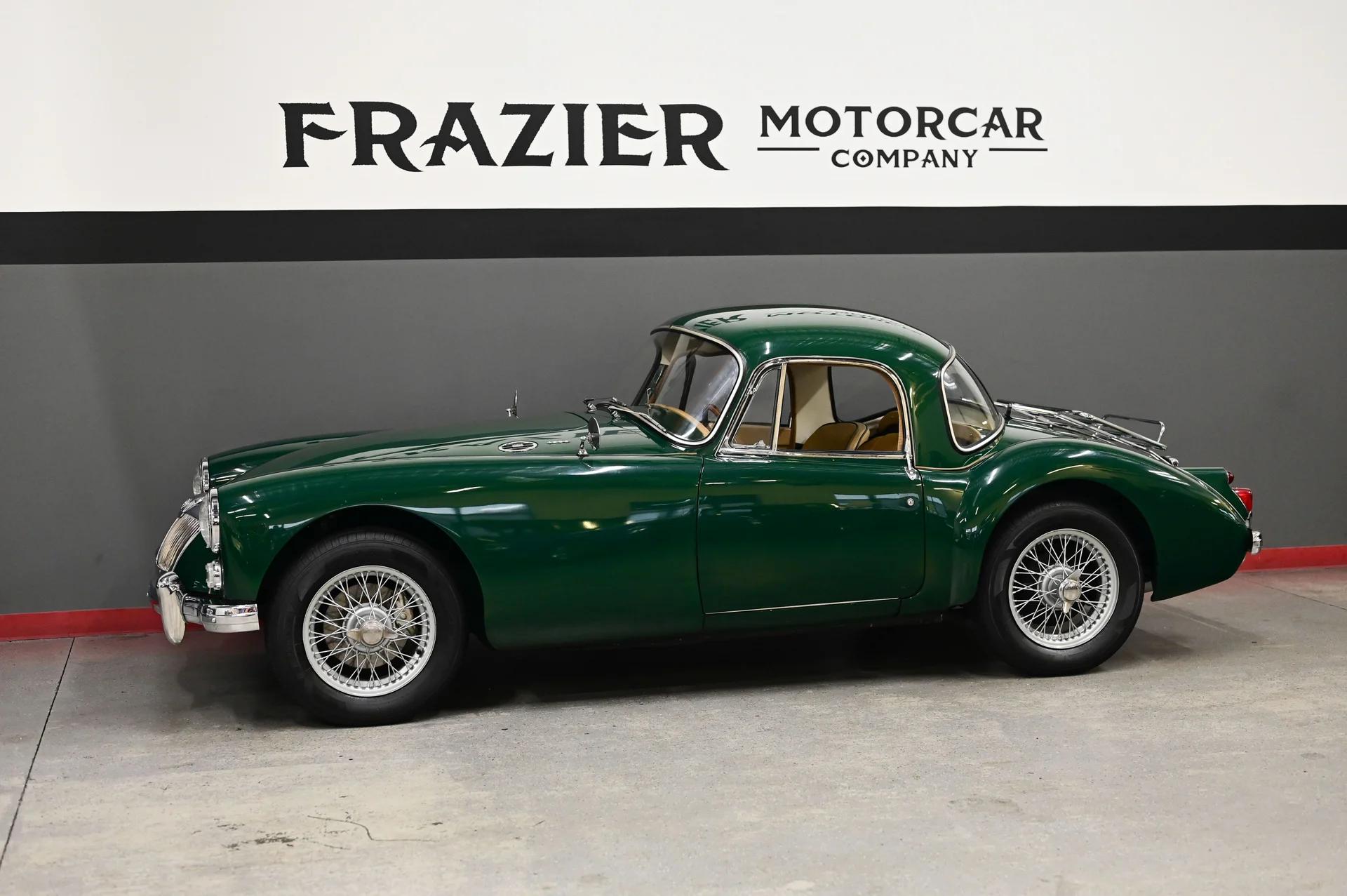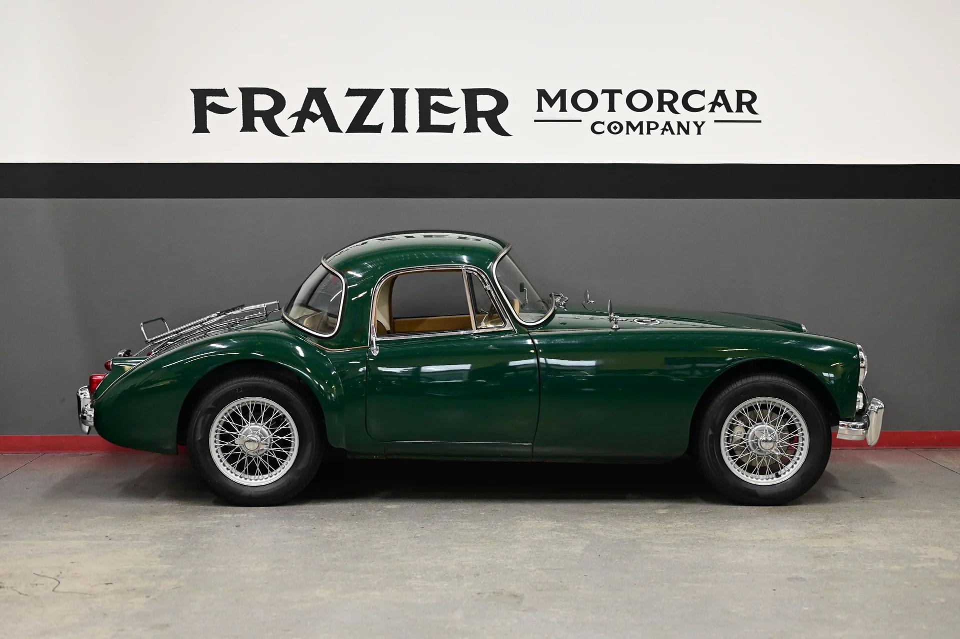 This Stunning MGA Coupe is as classic British as they come. The coupe has the beautiful soft lines of the MG A Roadster but more ,those fluid Hard Top lines married to the velvety lines of the body on the fluid Roadster. The lines painted in British Racing Green with tan interior should make any British Car Lover heart pump with excitement.