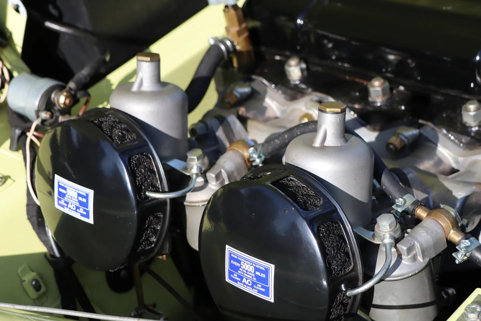The car still has its original engine, which has been overhauled. The car has also been professionally restored, with attention to originality. The drum brakes have been retained, as has the Lockheed rear axle. This rear axle is fitted with Revington axle shafts, as the original Triumph axle shafts often break. The original steering system and bonnet locking system have also been retained. A mass switch has been fitted, hidden behind the dashboard. In addition, the Triumph is equipped with anti-theft and anti-self-ignition devices, an aluminium radiator (painted black), original A-type overdrive, a narrow modern V-belt, electric ignition and the authentic “high-torque” starter motor. The original DC dynamo has been converted to an AC dynamo.