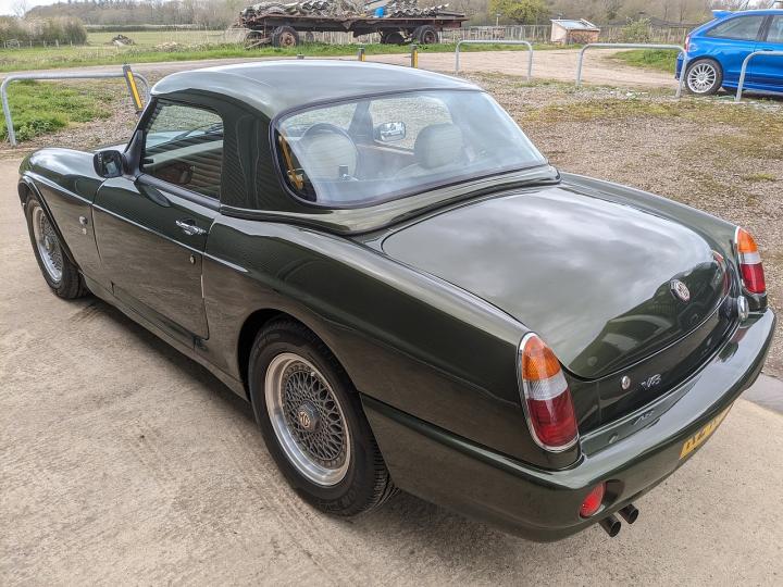 Mg RV8 finished in stunning Woodcote Green with tan leather trim.