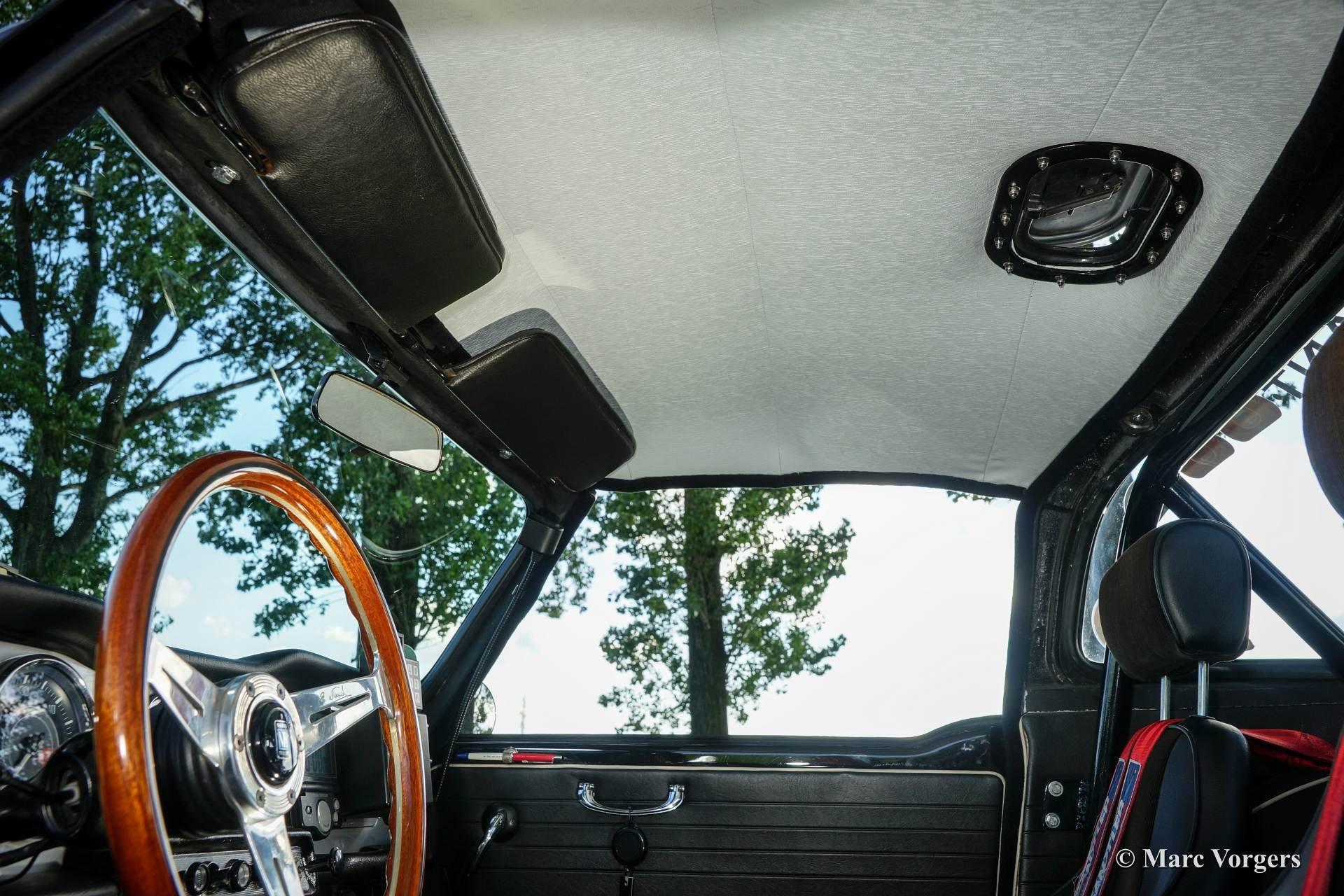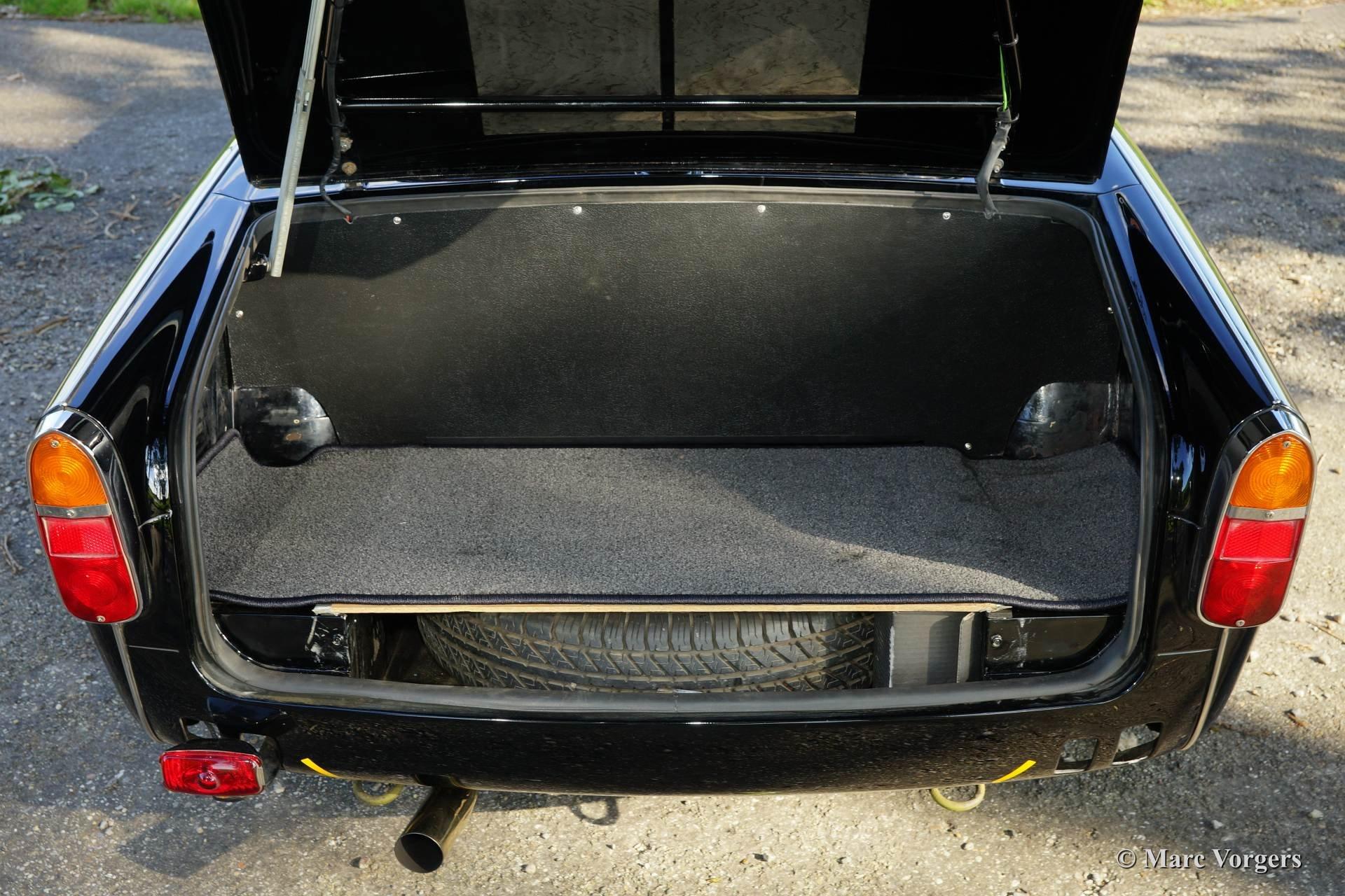 Op de motorkap is een fraaie "powerbulge" te zien die plaats biedt aan de twee carburateurs.